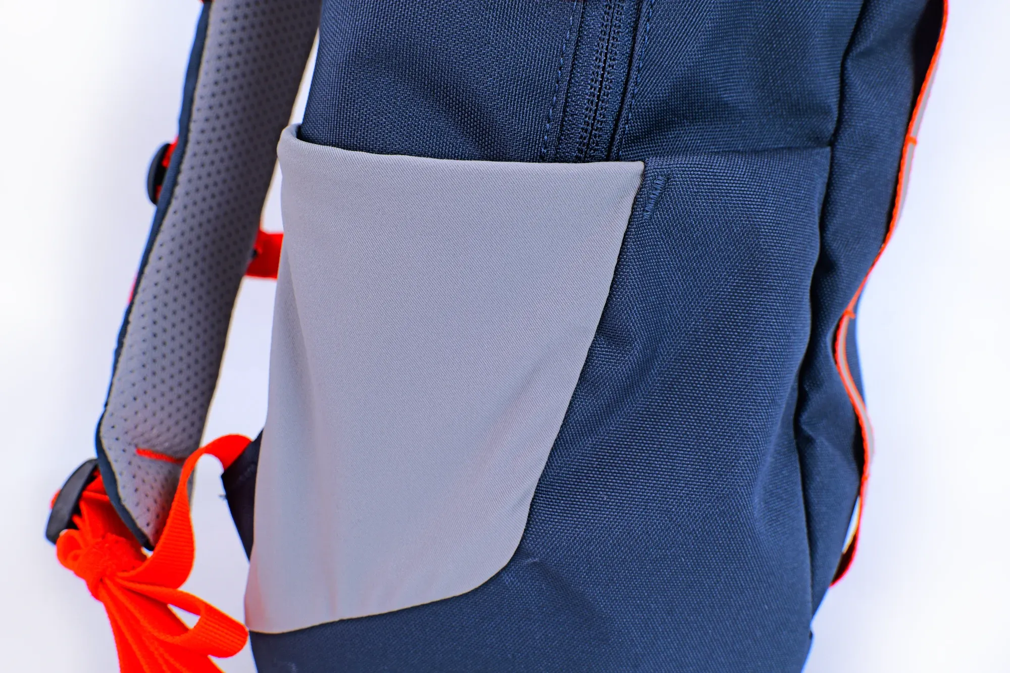 The Skule includes two standard side pockets designed for water bottles. These pockets utilize stretchy mesh construction that lies flat against the bag when empty, maintaining the streamlined profile. However, the pockets are oversized for standard water bottles, failing to provide a secure hold. The stretchy material loses its elasticity fairly quickly with regular use. If parents are prioritizing a firm grip on water bottles to prevent shifting or withstand rough handling by the kid, this design falls short of expectations.