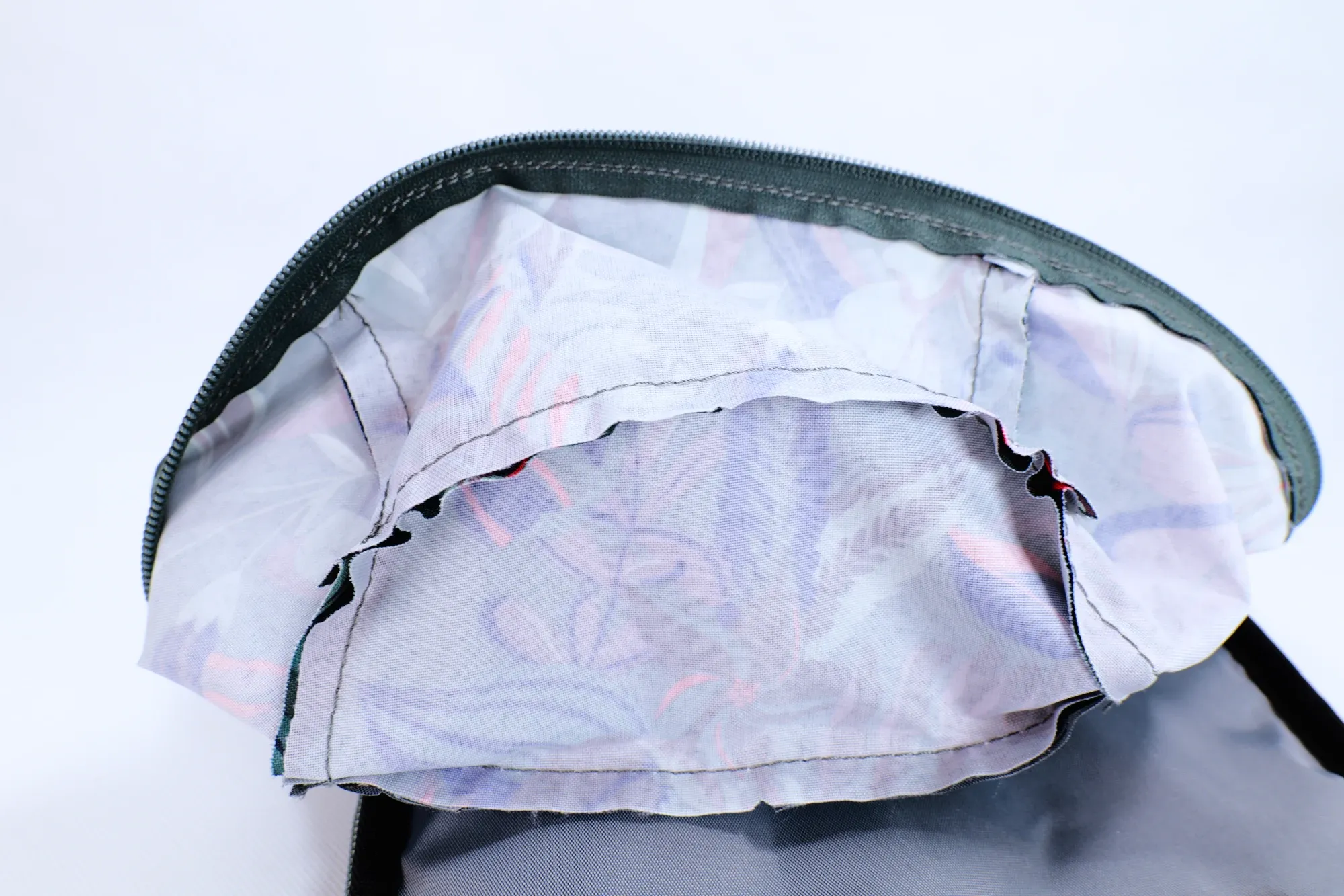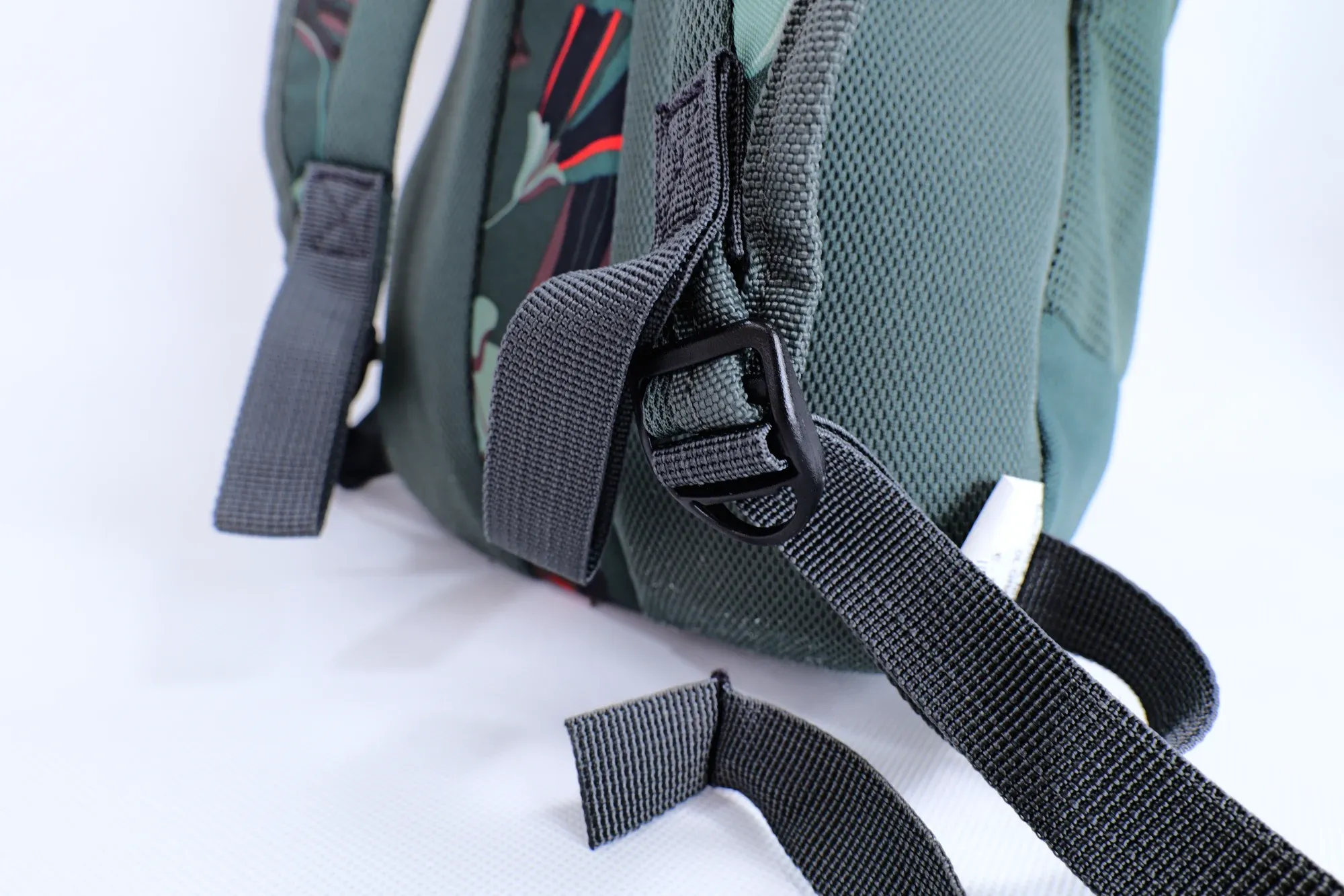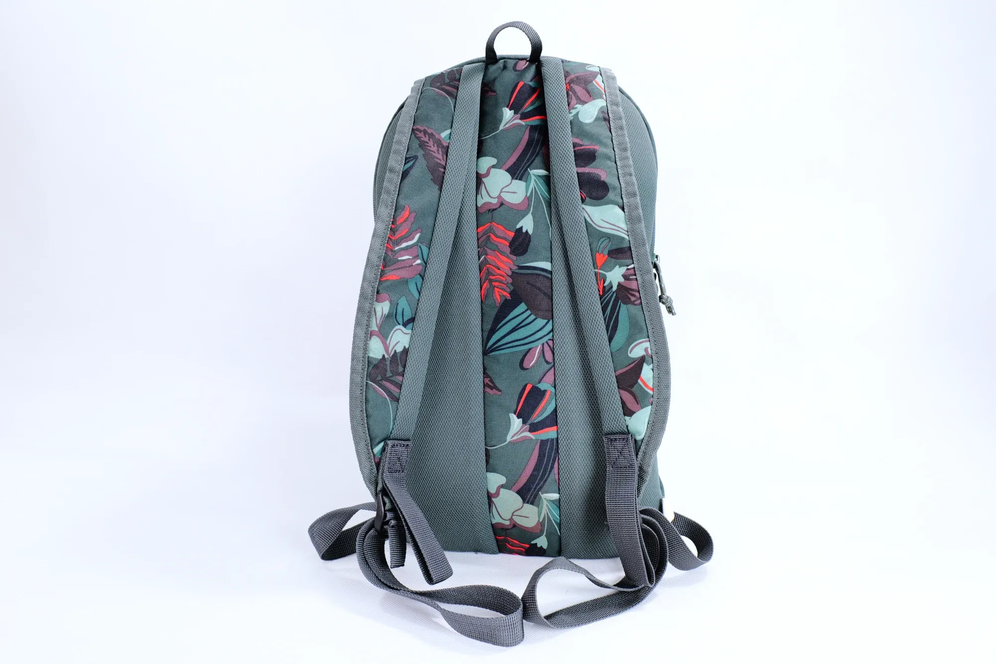I picked up the dark green with tropical floral print because my son was drawn to the pattern. There are other colorways available if botanicals aren't your thing. From what I gathered online, this appears to be an improved version of the original model that dates back to around 2015. The design includes one dedicated hydration pocket and a side zipper for quick access. Apart from that, there isn't much happening on the exterior.