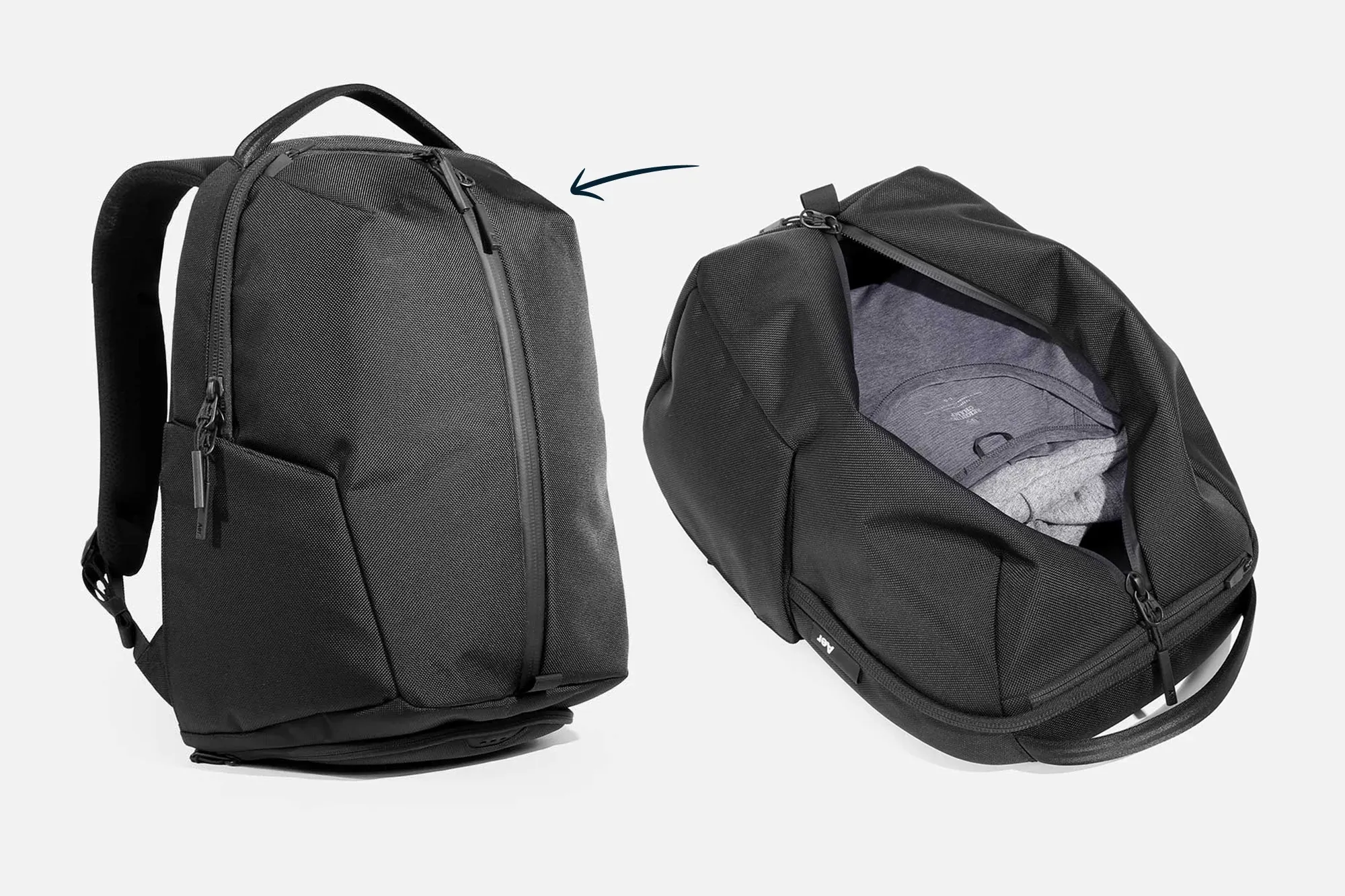 Quechua hiking 28L backpack and Aer fit adult backpack both allow direct bottom access without unpacking from the top.